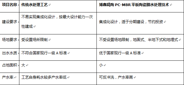 处理工艺的对比: PC-MBR平板陶瓷膜水处理技术VS传统处理工艺